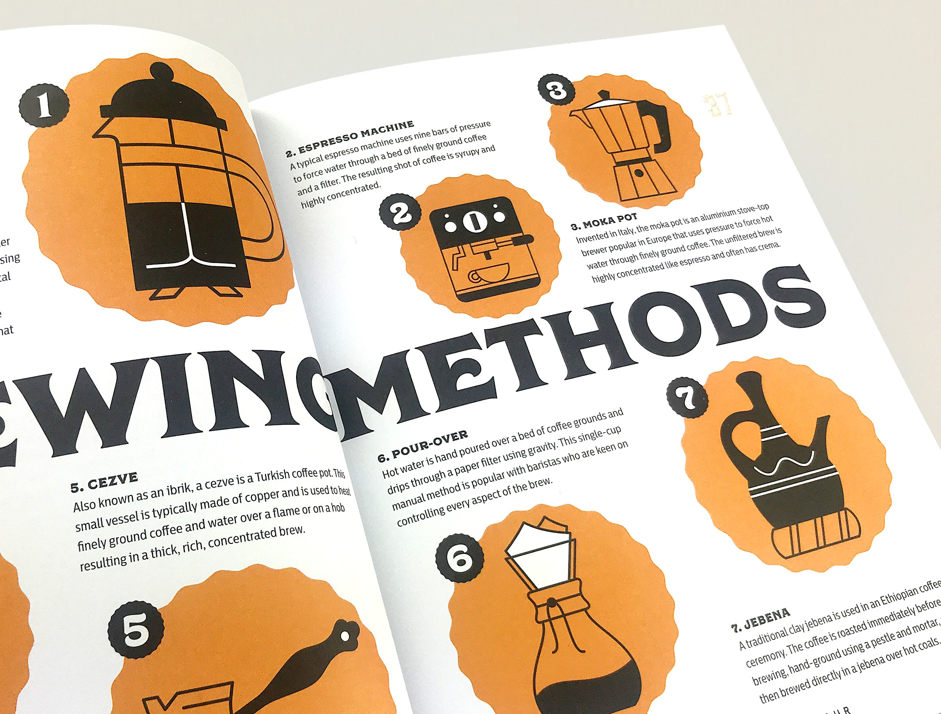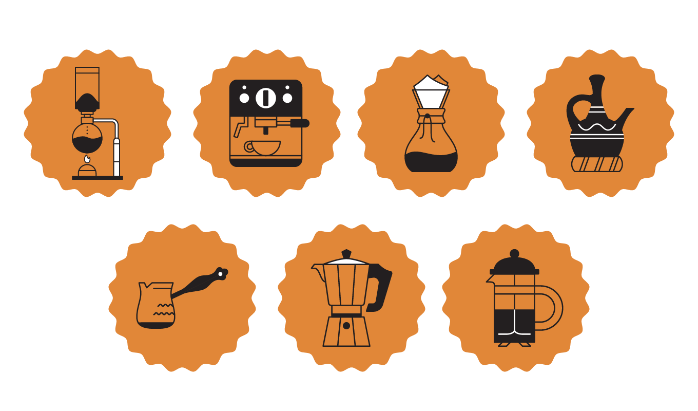 Illustrations of various coffee brewing methods from around the world for Lonely Planet's Global Coffee Tour book